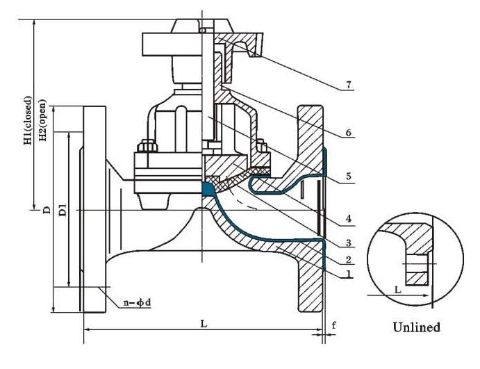 | Bağlantı (DN) | Nominal Basınç (MPa) | Çalışma Basıncı (MPa) | L | D | D1 | Z-Φ | f | H1 | H2 | D0 | (Kg) |
